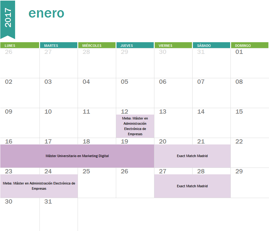 Semmántica Agenda trimestral de Semmantica: formación y eventos 11 enero 2017 11-01-2017 Cristina Gómez Comenzamos un nuevo año con las pilas completamente cargadas y con él, eventos interesantes a los que asistir y distintas formaciones que impartiremos en diferentes universidades y escuelas de negocios en distintos puntos de España. El primer mes del año, enero, comenzamos con dos clásicos de todos los años y un curso nuevo: MeBA (Máster en Administración Electrónica de Empresas): desde el año 2012 llevamos dando sesiones de formación en el Meba de las campañas en Google Adwords para que los alumnos de dicha promoción adquieran el conocimiento y la competencia necesaria para que sean capaces de crear y gestionar campañas en dicha plataforma publicitaria. Las primeras sesiones, suelen caracterizarse por explicar las diferentes terminologías y conceptos básicos relacionados con google adwords para posteriomente adentrarlos en las diferentes tipologías y metodologías de campañas. Máster Universitario en Marketing Digital: este año nos estrenamos como profesores en el máster en marketing digital de la Universidad de Mondragón en Bilbao. Exact Match Madrid: Dicha formación tendrá comienzo el día 20 de Enero hasta el 11 de Febrero en Madrid. Dicho curso, está enfocado a aquellas personas, que independientemente de cual sea su nivel en Google Adwords, adquieran los conocimientos necesarios para la gestión de tráfico cualificado y optimización de las campañas, y a la vez, quieran superar el examen oficial de Google Adwords. Febrero viene marcado por los siguientes cursos y eventos: Exact Match Barcelona: Un año más, volvemos a impartir el curso de Exact Match en Barcelona desde el día 3 de Febrero al 25 Febrero. Si quieres aprender a utilizar Google Adwords de manera profesional y también obtener el certificado de Google Adwords, no pierdas esta oportunidad. Santander Social Weekend: Es un evento que tendrá lugar en Santander los días 17, 18 y 19 de Febrero. Dicho evento está orientado a profesionales del sector online y participaremos como ponentes para hablar sobre métricas a tener en cuenta en un ecommerce. Para el tercer mes de año planeamos las siguientes formaciones: Kühnel: en marzo seremos por segundo año consecutivo profesores del Máster en Digital Business de Kühnel Escuela de Negocios. En este máster, se imparten tanto sesiones de formación sobre Google Analytics como de SEM y Google Adwords. En mabos módulos, los alumnos irán adquiriendo los conocimientos necesarios para poder ser capaces de desenvolverse y sacarle provecho a estas herramientas, así como ponerlo en práctica directamente en el Proyecto Fin de Máster. Meba: Terminamos el mes con otra formación en el Meba para dar por concluido todo lo necesario para que los alumnos del Máster en Administración Electrónica de Empresa puedan ya crear, activar y gestionar campañas con la herramienta de Google Adwords para participar en el concurso de Google Online Marketing Challenge en el que Google todos los años, ofrece la oportunidad a estudiantes de todo el mundo a experimentar acerca de la creación y gestión de las campañas de Google Adwords. Una vez finalizado el concurso, Google premiará a aquellos estudiantes que mejor han gestionado las campañas, ofreciéndoles un reconocimiento y varios premios como recompensa al buen trabajo realizado. Como os hemos comentado, estamos con las pilas cargadas y con muchas ganas de ofrecer formación, aprender y asistir a eventos. ¡Comenzamos el 2017! Compártelo Los comentarios están cerrados.