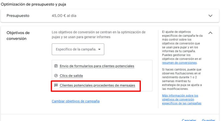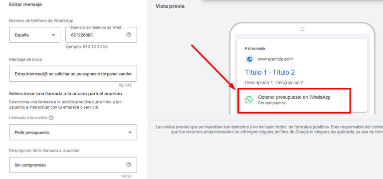 Google Ads Extensión de WhatsApp en Google Ads 25 junio 2025 25-06-2025 ÁLVARO RUFO En un ecosistema digital donde cada vez todo se desarrolla más rápido y no hay tiempo que perder, tener la opción de que un cliente potencial pueda contactarnos directamente sin necesidad de aterrizar en nuestra web, puede ser un gran aliado a la hora de hacer crecer nuestro negocio. Esto es posible gracias a la extensión de mensaje de WhatsApp. ¿Qué es la extensión de mensaje de WhatsaApp en Google Ads? La extensión de mensaje de WhatsApp en Google Ads también llamada “Click a WhatsApp” o “Recurso de Mensaje” es un activo interactivo que puedes añadir a tus anuncios de Google Ads, permitiendo que los usuarios inicien una conversación directamente contigo a través de WhatsApp. Imagina esto: un usuario busca tu servicio en Google, ve tu anuncio y, en lugar de navegar a tu sitio web, puede enviarte un WhatsApp al instante para preguntar por precios, disponibilidad o cualquier otra duda ¡Es la inmediatez personificada! ¿Por qué es últil para tu estrategia de Paid Media? Conexión inmediata y directa: Eliminamos fricciones. No más formularios, ni largos tiempos de espera. El usuario obtiene una respuesta rápida, y tú captas su atención en el momento de mayor interés. Experiencia de usuario mejorada: Ofrecer múltiples vías de contacto demuestra proactividad y se adapta a las preferencias de comunicación de diferentes usuarios. Muchos prefieren un chat rápido a una llamada telefónica. Por ejemplo en países latinoamericanos el uso de WhatsApp para compra de productos o servicios es mucho más elevado que en Europa. Optimización para dispositivos móviles: En un mundo mobile-first, esta extensión es perfecta. Un clic en el icono de mensaje abre la aplicación de WhatsApp, facilitando la interacción desde cualquier smartphone. Información valiosa para el negocio: A través de estas conversaciones, puedes recopilar feedback directo, entender mejor las objeciones de los clientes y adaptar tus ofertas o tu comunicación. Diferenciación de la competencia: Es algo relativamente novedoso, todavía no es universal. Implementarlo te da una ventaja competitiva, mostrando un enfoque moderno y centrado en el cliente. Con la extensión de Google Ads “Clic a WhatsApp” aprovechas la inmediatez de la red más usada ¿Dónde se muestra este Recurso de Mensaje? La gran noticia es que la extensión de WhatsApp no se limita sólo a las campañas de búsqueda tradicionales. Su alcance se ha expandido, lo que lo hace aún más potente: Red de Búsqueda de Google: Es su hogar principal. Tus anuncios de texto pueden aparecer con un botón o enlace de WhatsApp directamente debajo de las descripciones, haciendo que sea visible para el usuario justo cuando busca activamente tus productos o servicios. Partners de Búsqueda de Google: Extiende la visibilidad a cientos de otros sitios web y propiedades de Google que muestran resultados de búsqueda. Campañas de Performance Max o Máximo Rendimiento: Un tipo de campaña que abarca múltiples emplazamientos. Esto significa que tu recurso de mensaje o click a WhatsApp puede aparecer en: Campañas red de Display de Google (GDN): Millones de sitios web y aplicaciones. Campañas YouTube: Anuncios en video, feeds o resultados de búsqueda dentro de la plataforma. Gmail: En las pestañas de la bandeja de entrada. Discover: Contenido personalizado en los feeds de la aplicación de Google. Google Maps: Cuando los usuarios buscan negocios o ubicaciones. Esta amplia cobertura a través de Performance Max significa que, al utilizar esta extensión de WhatsApp, estás abriendo una vía de comunicación directa en prácticamente todo el ecosistema de Google. ¿Cómo implementar la extensión de WhatsApp en tus campañas? Accede a tu cuenta de Google Ads: Dirígete a la sección de “Recursos” y después a “Mensaje” para crear una nueva extensión. Crea un nuevo “Recurso de Mensaje”: Podrás añadirlo a nivel cuenta, campaña o grupo de anuncios. Selecciona el país y el número de teléfono de WhatsApp deseado. Asegúrate de que sea un número de WhatsApp Business si lo utilizas para tu empresa y así poder aprovechar todas sus funcionalidades. Configura la comunicación: Personaliza el mensaje de inicio, selecciona una llamada a la acción y añade una descripción de la llamada a la acción. Ejemplo: Programación (Opcional): Define en qué días y horas quieres que se muestre el recurso, ideal para cuando tu equipo esté disponible para responder. ¿Puedo optimizar mis campañas con este Objetivo de Conversión? Por supuesto. Cuando crees tu primera extensión a WhatsApp, en el apartado de conversiones se creará automáticamente una acción de conversión con el nombre de Conversación iniciada (clientes potenciales procedentes de mensajes). Una vez tenemos esta acción de conversión en la plataforma, ya podremos seleccionarla como objetivo para la correcta optimización de nuestras campañas destinadas a este fin. Extensión de WhatsApp para tus campañas internacionales Si estás pensando en ampliar el alcance de tus campañas internacionales, la extensión de WhatsApp en Google Ads es una excelente herramienta para conectar con usuarios de forma directa y efectiva. Es importante tener en cuenta que, mientras que en Android los anuncios de mensajes están disponibles en la mayoría de los países, en iOS su disponibilidad es más limitada y sólo se pueden mostrar en determinados mercados. Esta distinción puede influir en tu estrategia, especialmente si tu audiencia utiliza dispositivos Apple en un porcentaje relevante. Consideraciones clave extensión de WhatsApp Respuesta rápida: La inmediatez es la clave. Si ofreces esta vía de contacto, asegúrate de tener un equipo listo para responder de manera ágil y eficiente. Una respuesta tardía puede frustrar al usuario y perder el lead. Mensaje predeterminado claro: Esto ayuda al usuario a ini